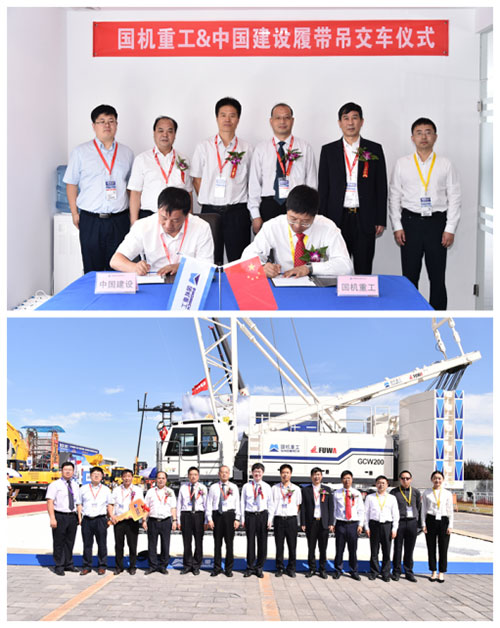 9月20日上午,國機(jī)重工與中國建設(shè)履帶吊交車儀式在BIECS 2017國機(jī)重工展位舉行。國機(jī)集團(tuán)副總經(jīng)理曾祥東,集團(tuán)公司董事長、黨委書記吳培國、國機(jī)集團(tuán)裝備制造事業(yè)部總監(jiān)趙飛,中國建設(shè)副總經(jīng)理楊傳良、杜正義,撫挖重工董事長徐楗元等出席交車儀式。